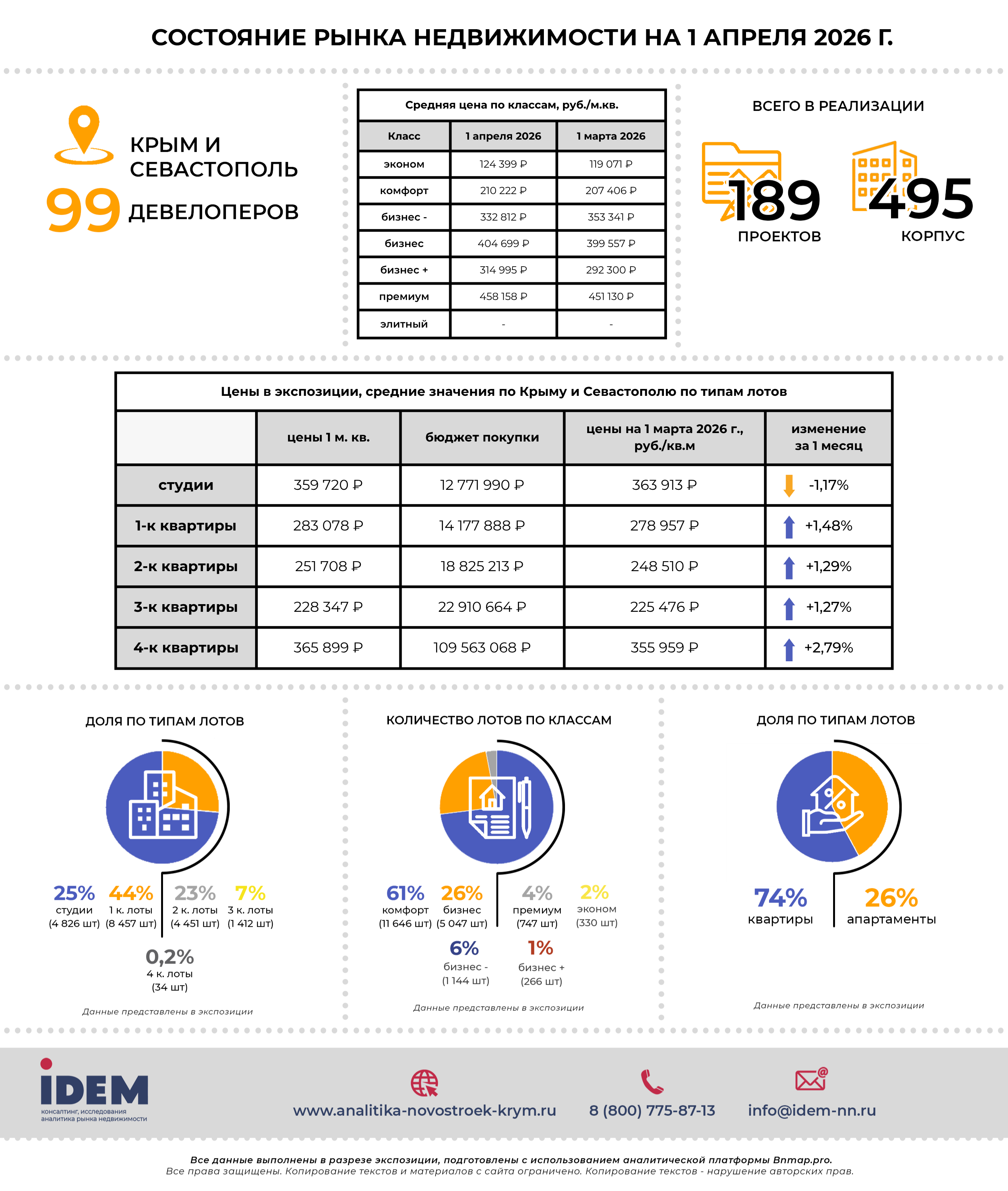 За отчетный период, календарный март 2022 года, на рынке новостроек Крыма и Севастополя произошел ряд изменений.